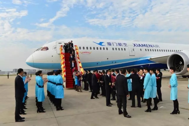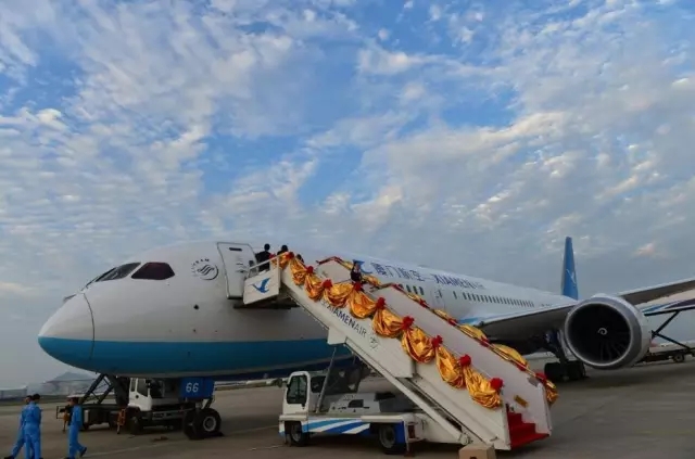這是一架更大的飛機(jī),是廈航現(xiàn)有787-8的升級(jí)型。該機(jī)型屬超遠(yuǎn)程中型客機(jī),不但可實(shí)現(xiàn)更多的點(diǎn)對(duì)點(diǎn)不經(jīng)停直飛,飛行也更加平穩(wěn)、安靜和環(huán)保。