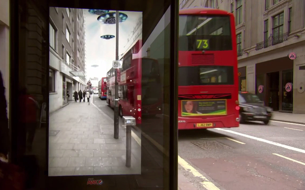 數(shù)字戶外,創(chuàng)意無(wú)限。比方說(shuō),百事在倫敦的候車亭屏幕上做過(guò)的AR廣告,讓等車的人可以看到UFO、飛人、老虎等動(dòng)態(tài)畫面,看起來(lái)就像是真的一樣,如果事先沒有準(zhǔn)備的話,人可能會(huì)被嚇到。